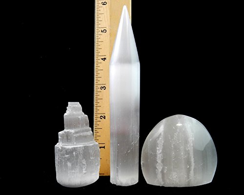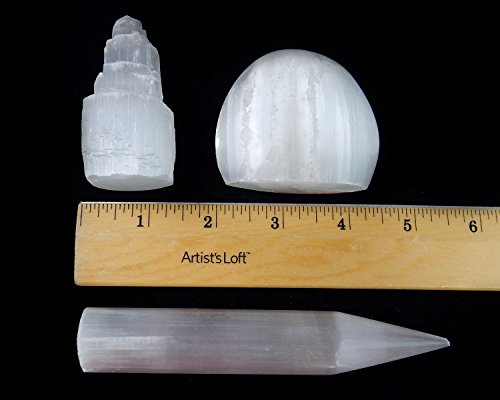 ? Sizes are approx.: Selenite Point: 5" x .875", Selenite Cut Base: 2.25" x 1", Selenite Tower: 2.5" x 1.25"