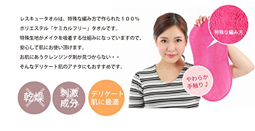 【メイクオフレスキューの6つのポイント】【1】時短でメイク落とし【2】水だけで落ちるのでデリケートなお肌にも安心【3】タオルで落としたいところだけ落とせる【4】タオルだけで軽くて持ち運び楽々【5】大き目サイズでなんでもOK【6】1000回以上使えるので経済的