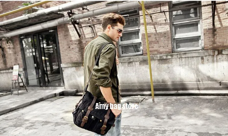 Canvas Leather Crossbody Bag Men Military Army Vintage Messenger Bags Sports Shoulder Bag Casual Travel Bags I AM LEGEND