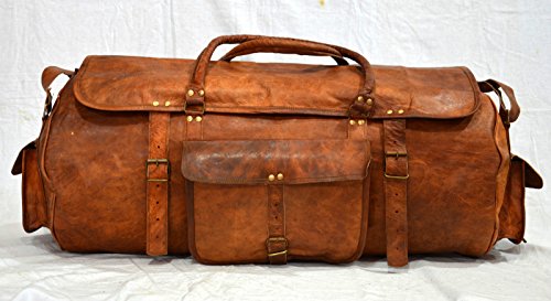 -. Feature : New genuine leather Duffel bag / Travel Bag handcrafted with vintage style / 1 front pocket, Top Protective Flap and Big Main Zipper compartment and 2 side pocket / Dimensions: 24 inches (length), 11 inches (height), 11 inches (depth) / Strong & durable brass fittings & buckles, quality zippers, heavy duty lining / Adjustable shoulder Strap , Big main compartments for clothing /travel and sports gear etc, Two Side pockets for accessories etc. Front pocket for cash /mobile