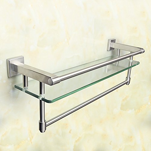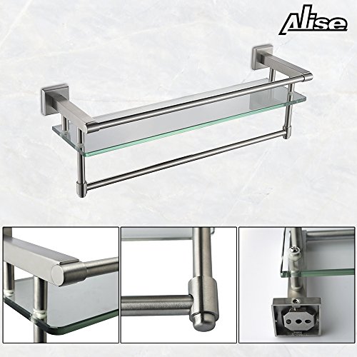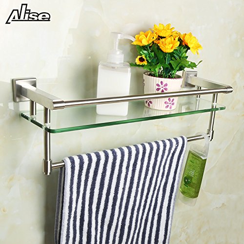 Alise SUS 304 Stainless Steel Bathroom Lavatory Towel Bar and Rail and 8mm Extra Thick Tempered Glass Shelf Wall Mount,Brushed Finish,GK9012