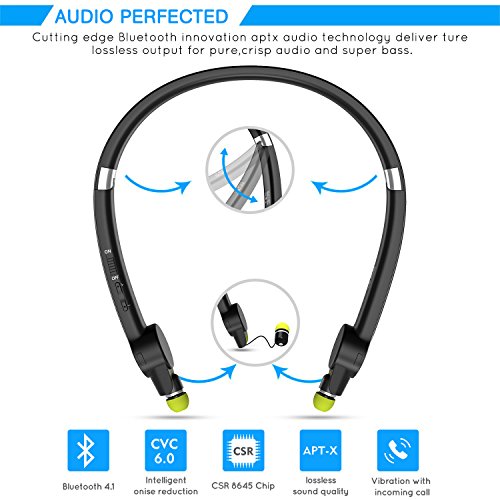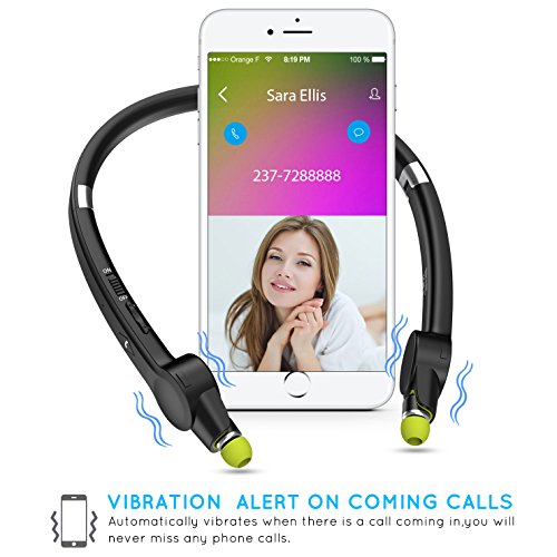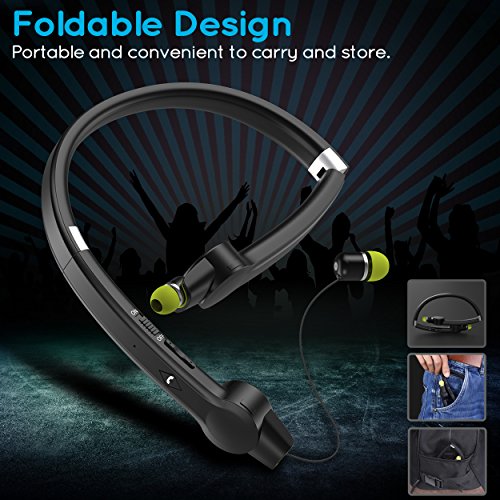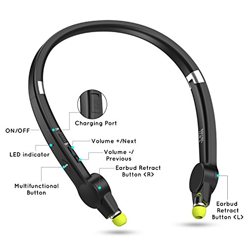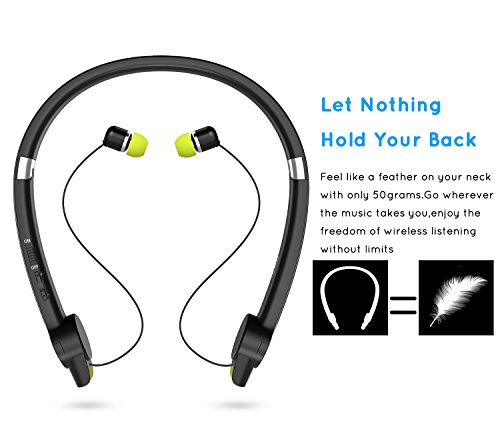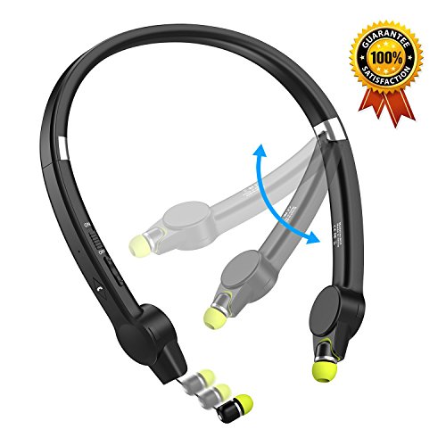 [Ultra Light Design] Senbowe™ Wireless Foldable Neckband Bluetooth Headset, Sport Bluetooth Headphones,Noise Cancelling Neckband Earbuds with Retractable Earbuds and Mic (12 Hours Talk Time)