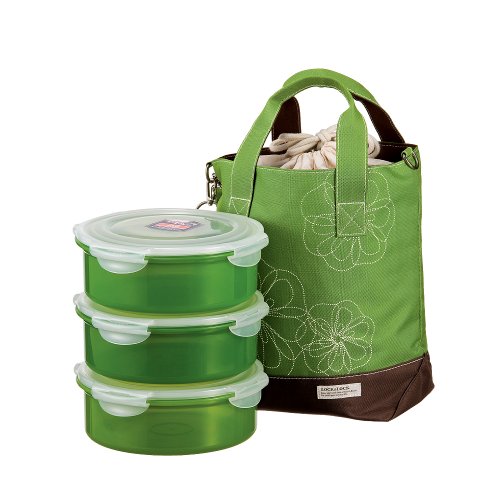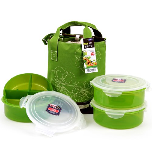 Lock&Lock 54-Fluid Ounce Round Lunch Box with Green Bag, 6.7-Cup, Divider