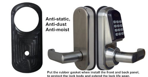 -. Feature : Keyless entry providing enhanced security. 3 Unlock options: code, mifare cards, and mechanical key. / Can be used with doors that are either right hand open or left hand open. Standard single latch. / 200 independent user codes(6digit)& the ability to quickly add or delete each user individually. / Made of stainless steel. Anti-static. Weather resistant. Keypad illuminates you can see it at night. / Easy installation, driven by 4pcs AA (not included). Package includes 2 keys and 2 mifare cards.