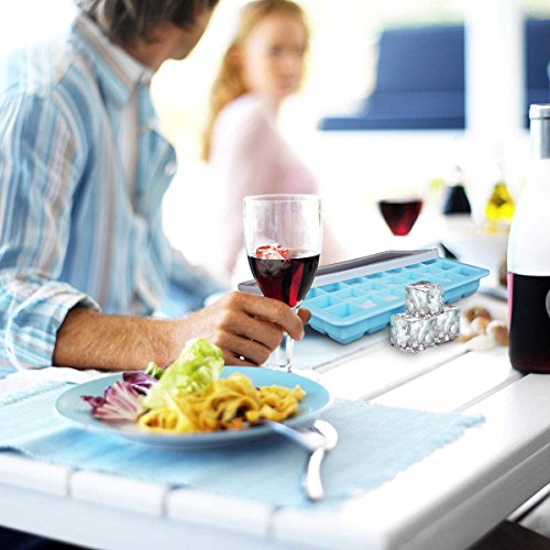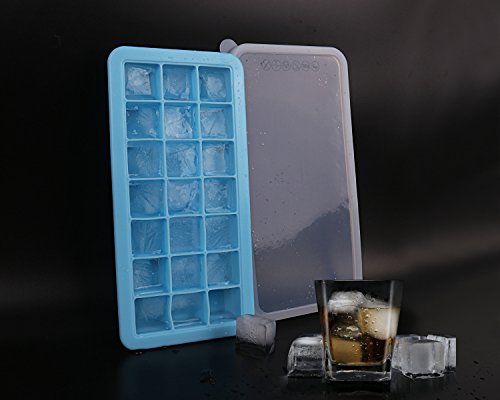 Ice Cube Trays, Warmhoming Premium Silicone 21 Cubes Ice Tray with Lid, Flexible Rubber Ice Cube Mold for Your Whiskey, Cocktail or Iced Coffee (Blue)
