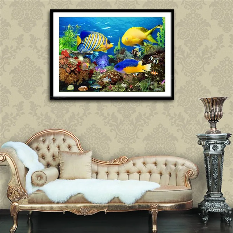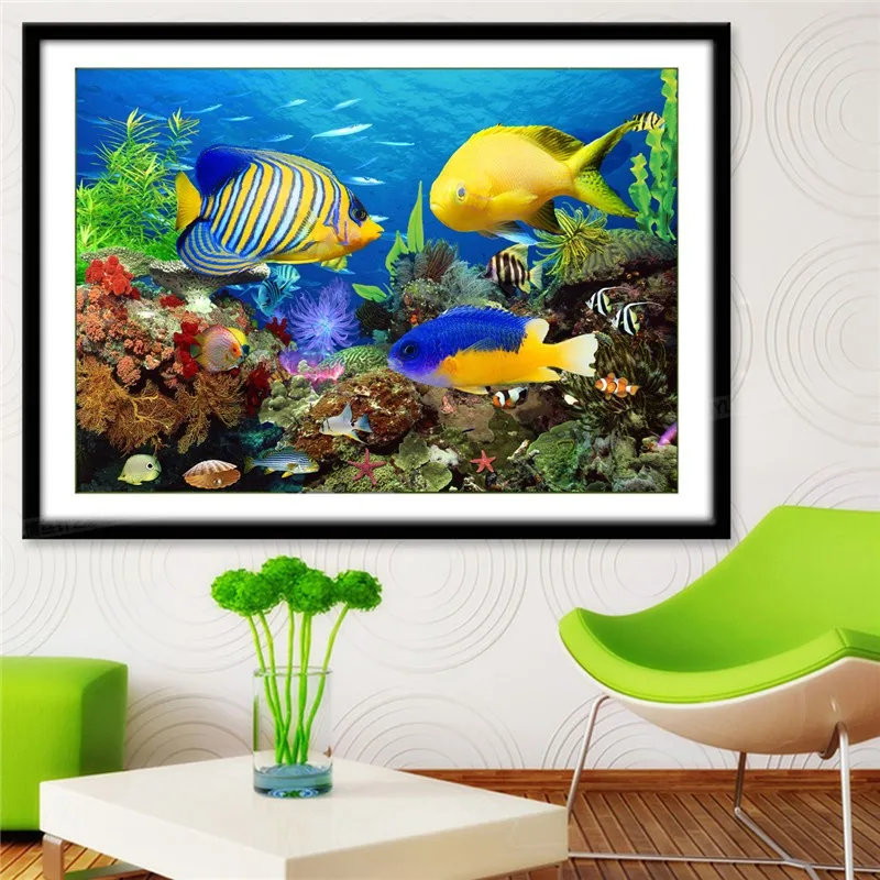 5D Cross Stitch DIY Diamond Painting Sea Scenic Fish in the Undersea World Home Decoration DIY Embroidery Diamonds