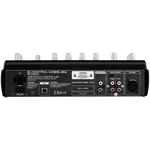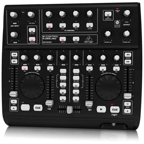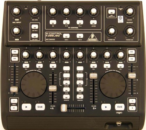 Amazon.com Product Description The B-CONTROL DEEJAY BCD3000 DJ mixer lets you play, mix and scratch any MP3, WAV or other audio format with a real vinyl feel. Packed with mind-blowing features such as mixer, dual-player, effects, mic/phono preamps and a full-fledged monitor section, this four-channel USB audio interface perfectly complements the included Native Instruments Traktor 3 LE DJ software or most other DJ software, running on Windows XP/Vista and Mac OS X operating systems. Play, mix and scratch any MP3, WAV or other audio format with a real vinyl feel. Click to enlarge. | Four user-assignable controls and buttons are available for an integrated FX section. | Two internal phono preamps to mix your vinyl records along with your digital files. | Fully featured The BCD3000 features a full-speed USB 4-channel audio interface plus high-resolution 24-bit A/D and D/A converters. It's an integrated, full-fledged audio mixer with a premium quality mic preamp, 3-band kill EQ per channel, ultra-precise faders, super-smooth crossfader and talkover function. Feel Your Digital Files Get ultimate control over your virtual DJ machine and play, mix and scratch MP3, AAC, WMA, OGG, WAV and AIFF files with vinyl feeling. Vinyl Ready The BCD3000 is packed with two state-of-the-art phono preamplifiers, so you can mix your vinyl records alongside your MP3 files. Sophisticated Headphone Section The BCD3000's headphone section lets you monitor using PFL Mix (both decks in both earcups), and directly listen to the master output mix. DJ-Friendly Control Start/Stop, Cue, Loop and Pitch Bend functions all feature dedicated controls for intuitive Djing, and 4 user-assignable controls and buttons are available for an integrated FX section. The two jog wheels are ideal for creative DJ performances like scratching, pitch bending and cue searching, and with three-band kill EQ, loop buttons, pitch and level faders, plus an ultra-smooth gliding crossfader with adjustable crossfader curve, you get total performance control. Built-In Mic Pre The internal microphone preamp features its own level and EQ adjustments, perfect for MC performances or DJ talkover. Includes Native Instruments Traktor 3 LE DJ Software Based on the award-winning TRAKTOR 3, this smaller version offers two decks and an integrated 2-channel mixer. Auto-sync, beat-accurate loops, and a host of other forward-thinking features and effects will have you mixing liquid sets in no time. What's in the Box Behringer BCD3000, Software CD, User's Manual 1