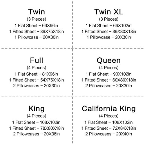 Content: King Set -1 Fitted Bed Sheet -"78 x 80" | 1 Flat Bed Sheet - 108" x 102" | 2 Pillow Cases- 20" X 40". Packaged in beautiful bamboo fabric bag of the same color with a satin string.
