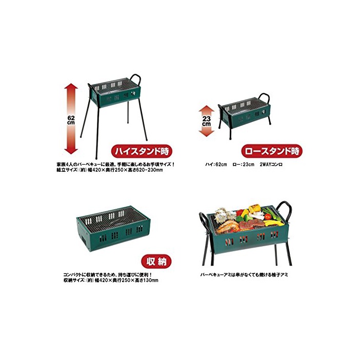 세트 내용:본체×1,바베큐망×1,눈(째)명×1,다리×4,각받는 것×2,나사×8,너트×8,캡×4