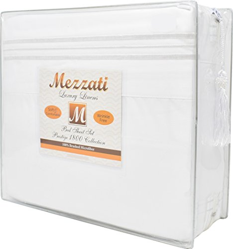 Mezzati 1800 Thread Count Brushed Microfiber Prestige Collection Luxury Bed Sheets Set, Queen, White