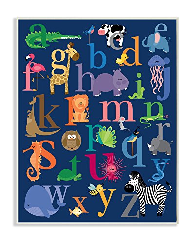 Stupell Home Décor Navy Alphabet Animal Icons Wall Plaque Art, 10 x 0.5 x 15, Proudly Made in USA