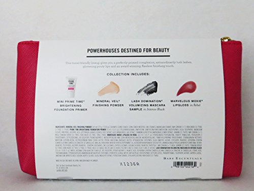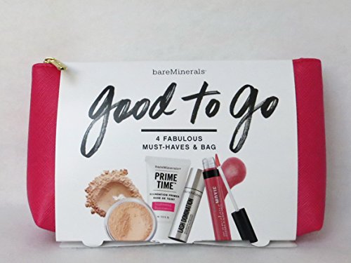 -. Binding : Misc. -. Brand : Bare Escentuals -. EAN : 0098132442164 -. Feature : bareMinerals Good To Go 4 Fabulous Must-Haves Gift Set w/Cosmetic Bag / Package includes: 1. Mini Prime Time Brightening Foundation Primer (0.5 oz/15 ml travel size) / 2. Mini Mineral Veil Finishing Powder (0.03 oz/0.75 g, travel size) / 3. Mini Lash Domination Volumizing mascara in Intense Black (0.05 oz/1.5 ml, sample/travel size) / 4. Marvelous Moxie Lipgloss in Rebel (0.15 oz/4.5 ml, Full Size), plus a Pink cosmetic bag. -. PackageQuantity : 4 -. ProductGroup : Beauty -. ProductTypeName : BEAUTY -. Title : bareMinerals Good To Go 4 Fabulous Must-Haves Gift Set w/Cosmetic Bag Primer + Veil + Mascara + Lipgloss -. UPC : 098132442164