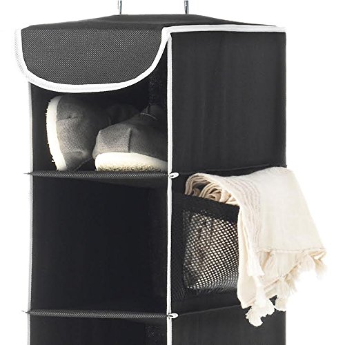 The black with white trim design looks sophisticated in any closet.
