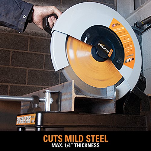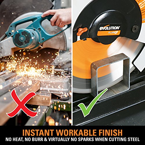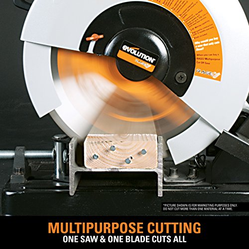 Utilizing professional RAGE technology; easily cuts Steel, Aluminium, Wood (even wood with nails) and Plastic, using just one blade. Evolution's tests have shown 1 x RAGE blade will last longer than 20 x Abrasive Discs! When cutting Steel, it leaves an instantly workable finish, producing no heat, no burr and virtually no sparks with no coolant is required - unlike alternative methods. Fast action swivel clamp enables cuts to be made from 0-45o. Other features include a hi-torque gearbox which reduces motor stresses, improving performance and durability.Feature