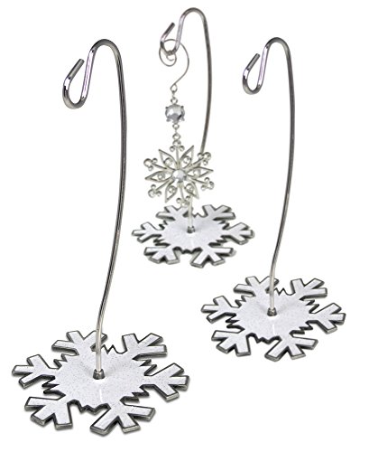 Christmas Ornament Stand - Set of 3 Snowflake Themed Ornament Hangers - White Glittered Snowflake Base