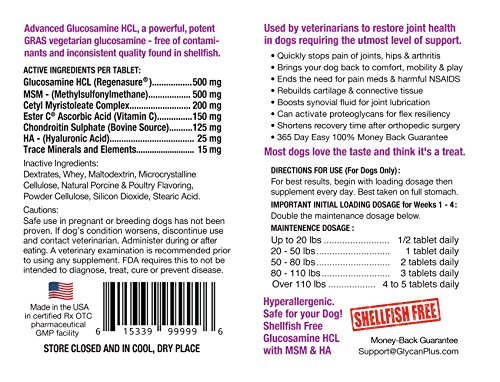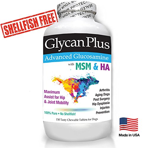 -. Title : Best Vets Glycan Plus 150 GLUCOSAMINE for Dogs Hip Dysplasia, Joint, Arthritis Pain with Chondroitin, MSM, Hyaluronic Acid, Cetyl-M, Vitamin C Tasty Chewable Tablets Made and Sourced in USA