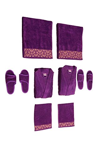 - 8piece set for couple, 2 bath robes, 2 bath towels, 2 hand towels, 2 sleepers set