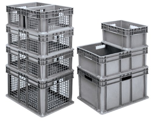 Akro-Mils 37278 16-Inch by 12-Inch by 8-Inch Straight Wall Container Tote with Mesh Sides and Solid Base, Case of 12, Grey