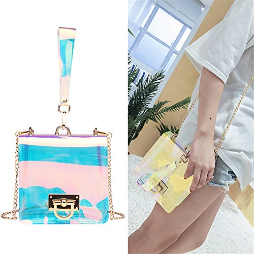 Women's Hologram Crossbody Purse Holographic Transparent Wristlet Bag Clutch
