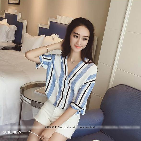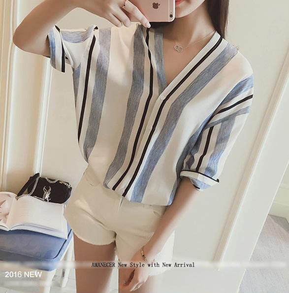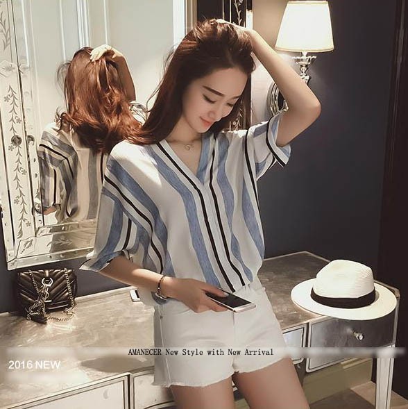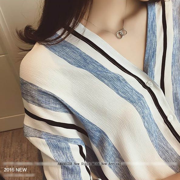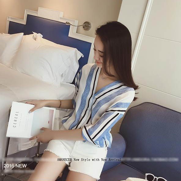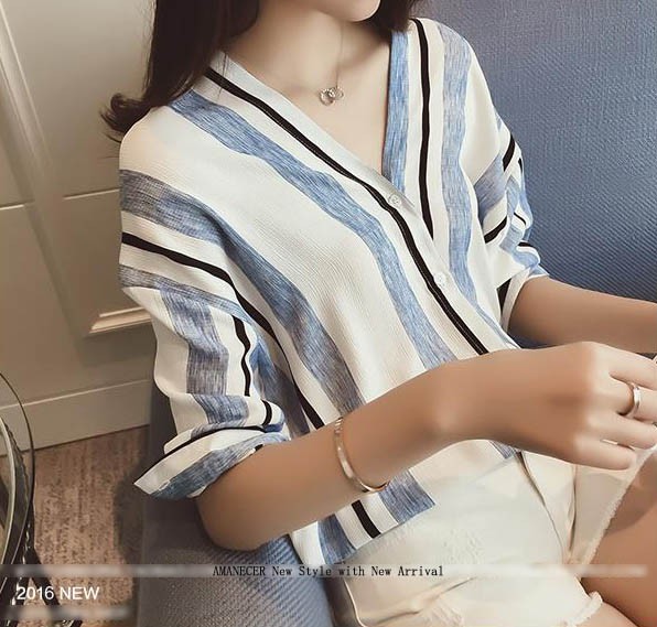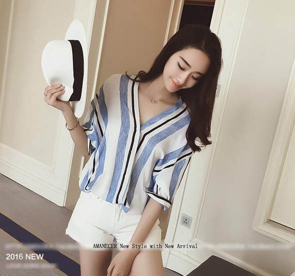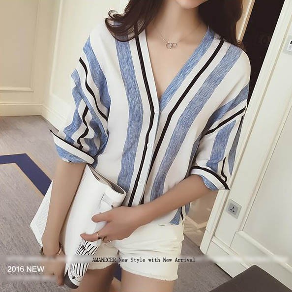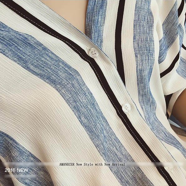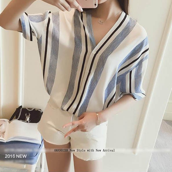 【入荷後営業日2,3日以内出荷予定 通関待ちや不良により出荷遅くなる場合はメールにてご連絡いたします。メール受信設定によっては正常に受信されない場合はございますので、 弊社からのメールを予め受信頂くようご設定くださいませ。】 トップス シフォンブラウス Vネック ボーダー ストライプ ドルマン シフォン レディス レディース 晩春 新作ストライプ柄シフォンブラウスです。弾力性なし◆サイズ:着丈65肩幅51袖丈28胸囲116◆素材:シフォン