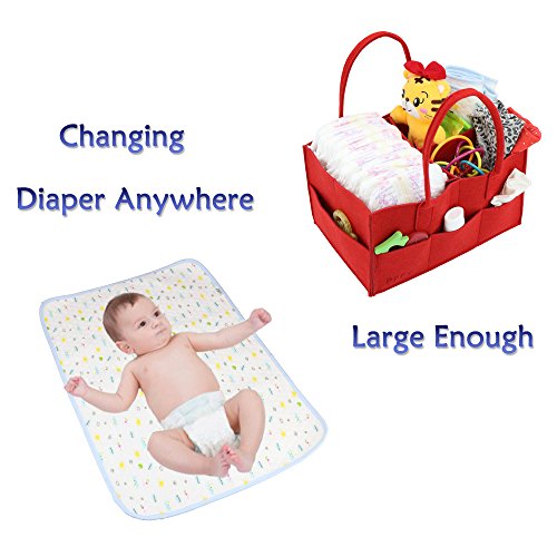 Studio : PFFY Publisher : PFFY Binding : Baby Product Product Description 1. Large Enough Convenient:The diaper caddy which has large inner moveable compartments and 8 exterior pockets organizes all of the baby products: wipes dispenser, diaper changing pad, diapers, clothes, bibs, baby cream, baby towl, baby toys, tissues and more. The baby diaper caddy organizes everything you need in one place well When changing a baby's diaper. It's very convenient to carry the diaper box out, essential diaper caddy for newborn products. 2. The newly improved changing pad is made from high absorbent terry fabric. it has the best grip, wider and longer, it's fitter for a standard changing table. The changing pad has TPU-free waterproof backing preventing to peel off. much thicker, Quilted design of these white toppers ensure that the air is trapped which provides a soft and comfy feel. Protects baby from dirty surfaces, They fold up really small, it's easy to keep them in a diaper bag, Ideal for use on changing pads. 3. High Quality Versatility: The diaper caddy utilizes a lightweight and flexible soft felt that provides rigidity where you need it and long term durability. The diaper caddy is lightweight, but it does a good job of maintaining its shape even while there's nothing in it. It also functions as an organizer for Car Organizer, pet supplies or picnics, etc.. The changing pad can also be an added layer of protection on car seats, highchairs, bouncers and rockers. 4. Clearner and Healthier: The diaper caddy and changing pad could be washed with banister brush by hand.(Tips: No Hot Water, No Washing Machine). they are easy to wash, keeping clear is very importent for baby's health. 0