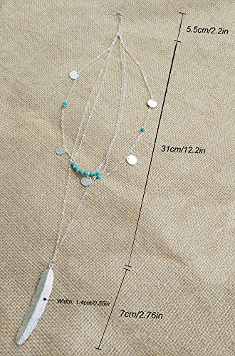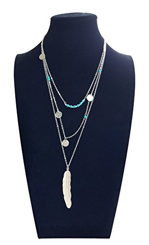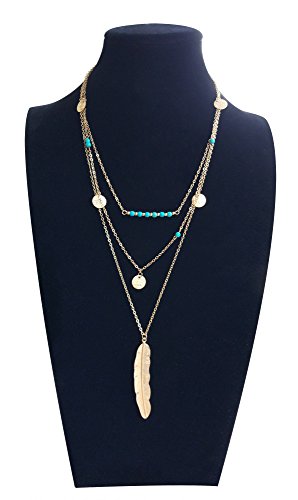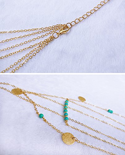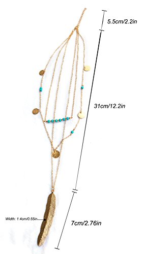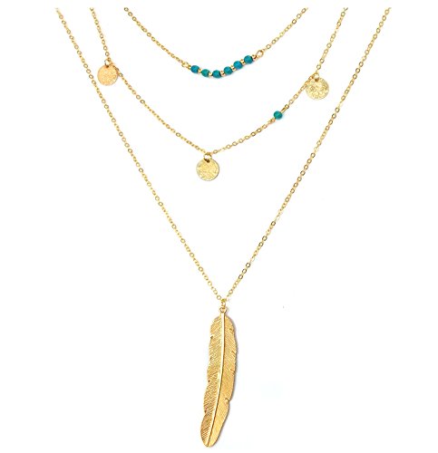 Suyi Exquisite Pailletten Mehrschichtige Ketten Turkis Perlen Halskette mit Federanhanger