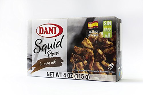 -. Feature : Dani Squid Pieces in own Ink ( Calamares Trozos ) Canned 4 oz ( 115 g) / Calamares en su tinta , trozos / Packed in Spain