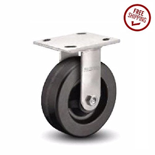 Albion 16MR08201R 8" Diameter Moldon Rubber on Cast Iron Wheel Medium Heavy Duty Rigid Caster, Roller Bearing, 4-1/2" Length x 4" Width Base Plate, 600 lb. Capacity