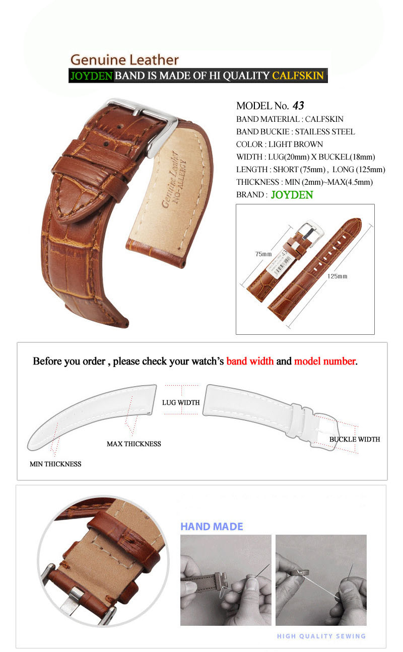 20mm22mm23mm24mm High Quality Genuine Leather calfskin watch strap band