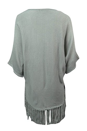 Sweater features knit acrylic fabric, scoop neck, short dolman sleeves, fringed hem and pull over style.