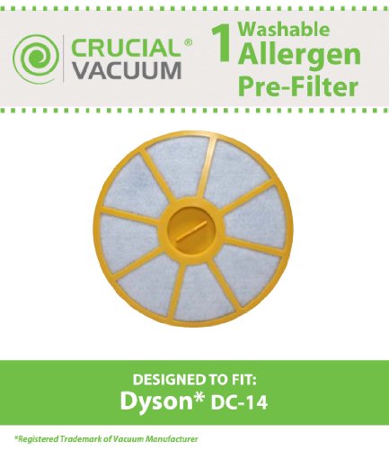 -. Feature : Washable and Reusable Dyson DC14 DC-14 Pre-Motor Filter by Crucial Vacuum. / Fits ALL Dyson DC14 DC-14 Vacuum Cleaner Models / Compare to Part # 905401-01 (90540101) / Absolutely Essential for Allergy Sufferers! / Designed and Developed in the USA by Crucial Vacuum