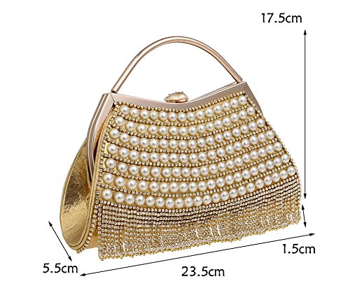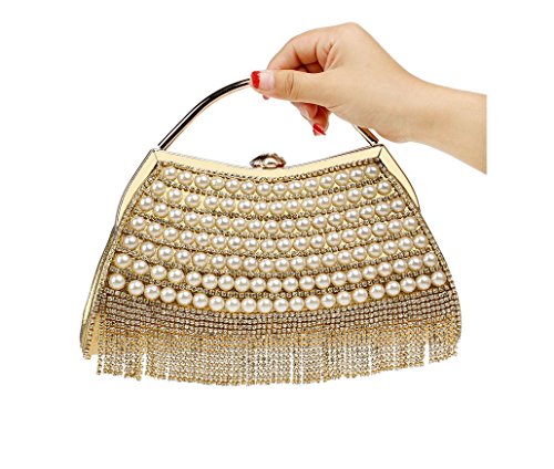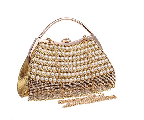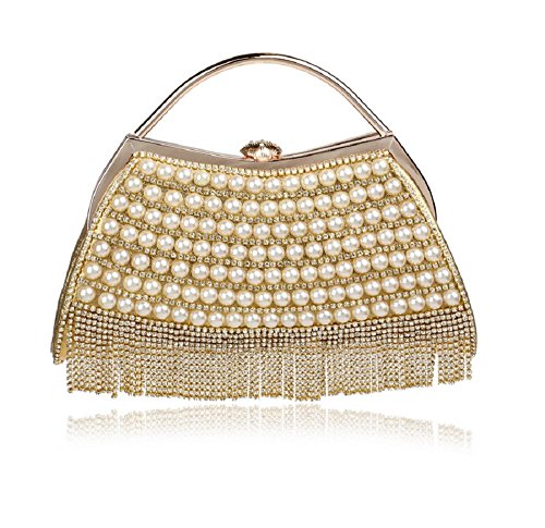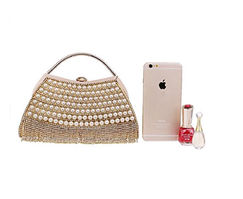XICHEN Fashion Pearl handmade Women's wedding package evening bag Fashion handbag Fashion Cosmetic bag (Gold)