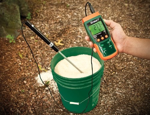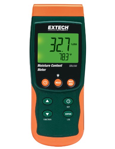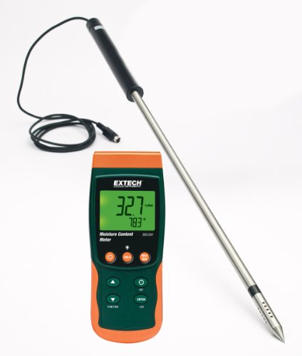 Studio : FLIR Systems Publisher : FLIR Systems Binding : Tools Home Improvement Product Description Monitor moisture in Grain, Corn, Rice, Cotton, Paper, and other materials. 23.7" (600mm) Heavy Duty Stainless Steel Probe with Replaceable Probe Head with inner filter. Measures Moisture Content, Air Temperature, Dew Point and Temperature. Moisture content measurement from 10 to 95%. Datalogger date/time stamps and stores readings on an SD card in Excel® format for easy transfer to a PC. Adjustable data sampling rate: 1 to 3600 seconds. Stores 99 readings manually and 20M readings via 2G SD card. Type K/J Thermocouple input for high temperature measurements. Large backlit dual LCD display simultaneously displays Moisture Content and Temperature. Record/Recall MIN, MAX, Data Hold, Auto Power Off. Built-in PC interface. Complete with Moisture Content Probe with 4.9ft (1.5m) cable, sensor cap, SD card, 9V battery and soft carrying case 0