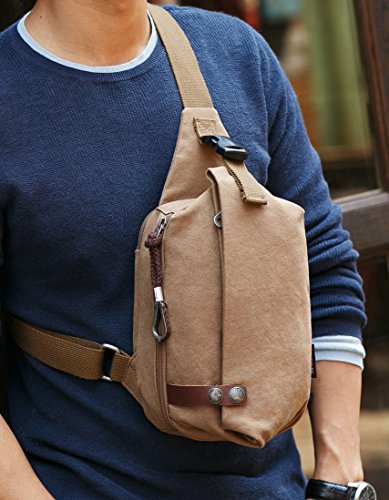 -. Brand : Muzee -. Department : boys -. Feature : Material: Soft and durable Washed Canvas with Leather DecoratiMain material: This backpack is made of 95% high density cotton canvas. / Size: 7.08*9.54*5.5 in (L*H*W). The sling pack can fit a laptop up to 7.9''. The bag can be either carried with the hand handle or adjustable shoulder strap. / The sling pack is vintage and multifunctional with lots of pockets. / The buckles on the top flap open and close easily and keep everything very secure. The zipper pocket on the top flap can put tickets and passport for easy access. The straps is adjustable and ultra-comfortable across your back and chest. It can act as a single-shoulder bag/sling bag, or a cross-body bag for use. / Warranty: All of our bags have 1-YEAR WARRANTY. Any quality problems with your bag, please contact us, we will solve it. -. ProductGroup : Apparel -. ProductTypeName : LAGE -. Size : Large -. Title : Muzee Sling Bag Chest Shoulder Gym Backpack Sack Satchel Outdoor Crossbody Bag