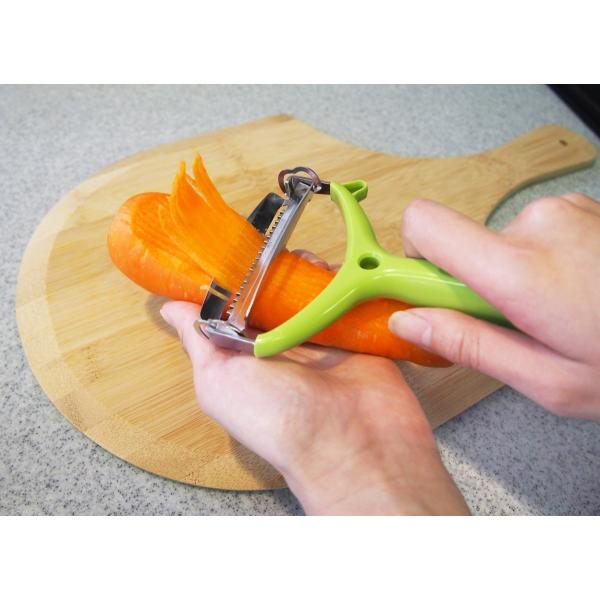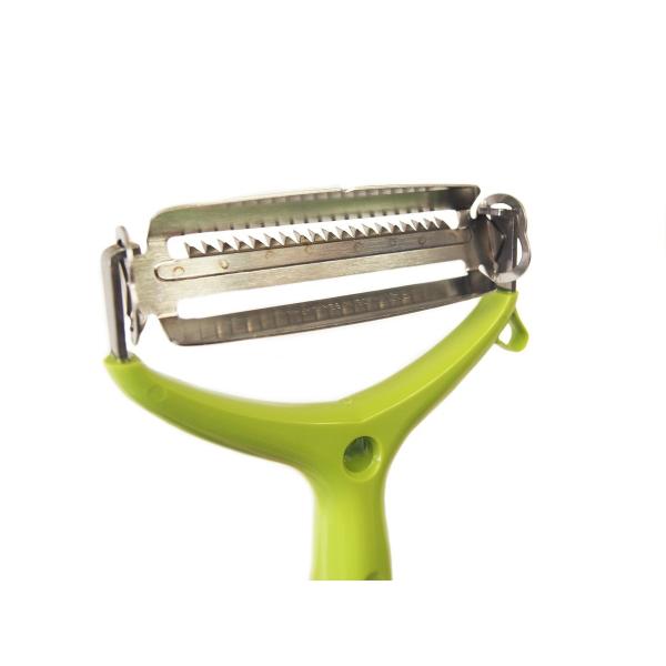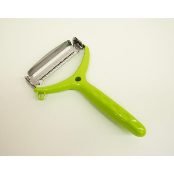 ◆刃の付け替え不要!!刃を回転させるだけで、刃千切り刃とスライス刃が替えられる2in1の優れものピーラー。