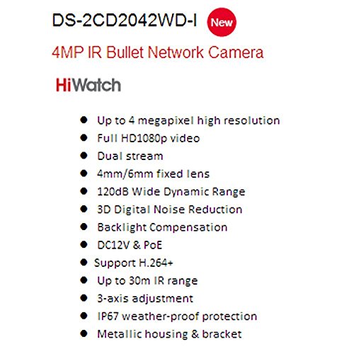 -. Title : Hikvision DS-2CD2042WD-I, 4MP IR Mini Bullet Network Security Camera POE Day Night Vision IP67 Waterproof HD Home Surveillance CCTV camera, English Version, 4mm Lens