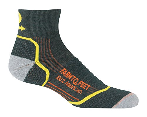 -. Binding : Apparel -. Brand : Farm to Feet -. Department : mens -. Feature : Merino wool is soft, itch-free, naturally odor and bacteria resistant, cool in the summer and warm in winter / Superior knitting techniques create a totally flat connection in the toe box, reducing bulk and eliminating blister-generating friction / Full-density cushioning provides better insulation, wicking, impact protection and faster moisture absorption to keep you Dry and reduce friction / Compression from the top of the sock through the arch creates a comfortable fit that helps support the foot throughout the day / To ensure long-lasting comfort and fit, Farm to Feet socks should be machine washed cold and laid flat to Dry -. Label : Farm to Feet -. Manufacturer : Farm to Feet -. Model : 8991 -. NumberOfItems : 2 -. ProductGroup : Sports -. ProductTypeName : OUTDOOR_RECREATION_PRODUCT -. Publisher : Farm to Feet -. Studio : Farm to Feet -. Title : Farm to Feet Damascus Lightweight Elite Hiking 1/4 Crew Socks
