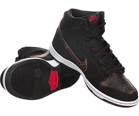 Nike Mens Dunk High Pro SB "Distressed Leather" Black/University Red Leather Size 10