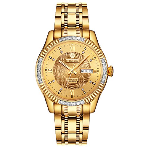원본상품명: BINLUN 腕時計 機械式 ダイヤモンド 高級感 シ?スル?バック 自動?き ゴ?ルド 文字盤 金 ウォッチ [?行輸入品]