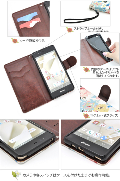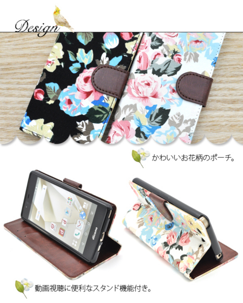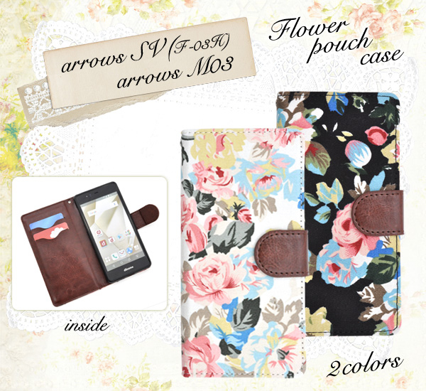 arrows SV (F-03H)/arrows M03用のエレガントなフラワーポーチケース。