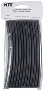 NTE Electronics 47-20406-BK Heat Shrink Tubing, Thin Wall, 2:1 Shrink Ratio, 3/16" Diameter, 6" Length, Black (Pack of 25)