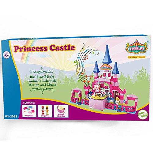 -. Feature : Build-windup-spin with music / Wind-up music box with spin platform, no battery needed / castle with spinning horse balcony / Wind up and watch the wonderland spin and come to life with music / Includes 192 block pcs, 2 figurines, plus music box / Size 13" l x 7" w x 11" h / Collect all four wonderland - deluxe styles (Ferris wheel, merry-go-round, & coffee cup) / Endless fun of creativity by adding motion and music to any blocks with ZTrend wonderland music box
