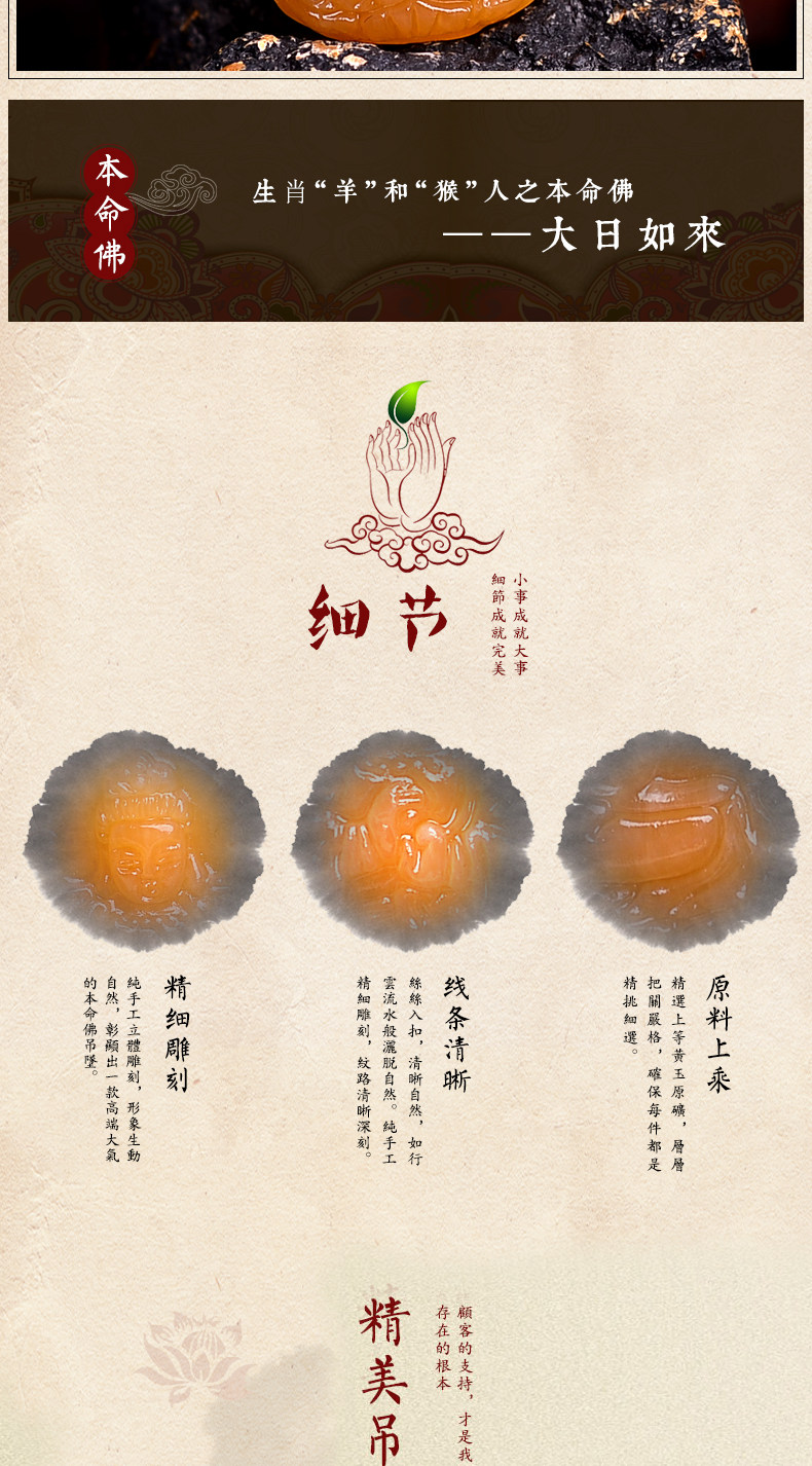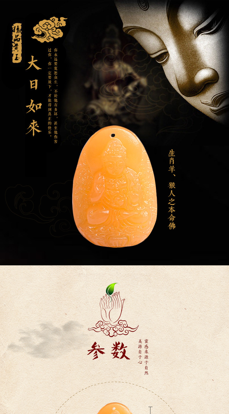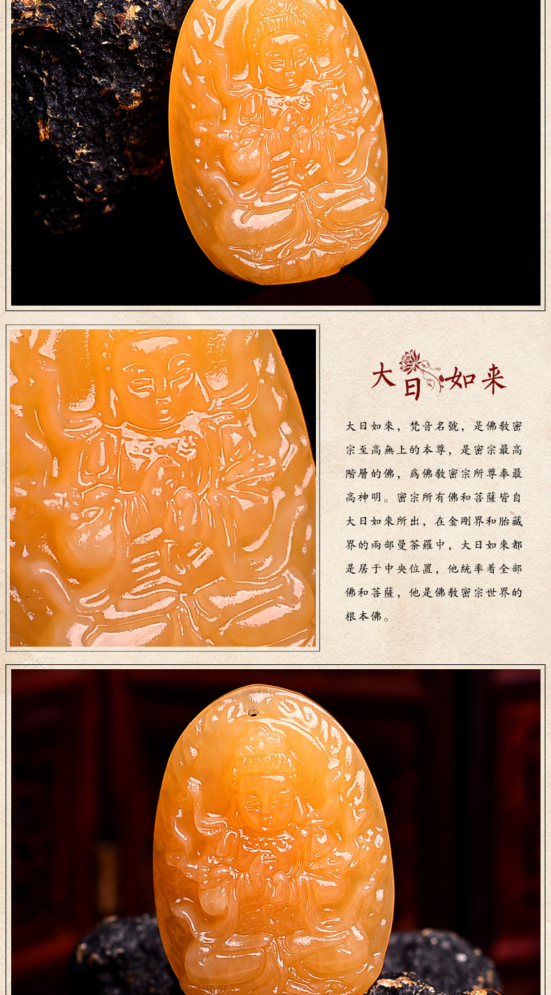 开光黄玉大日如来菩萨吊坠 生肖属羊猴终生守护神本命佛玉石男女