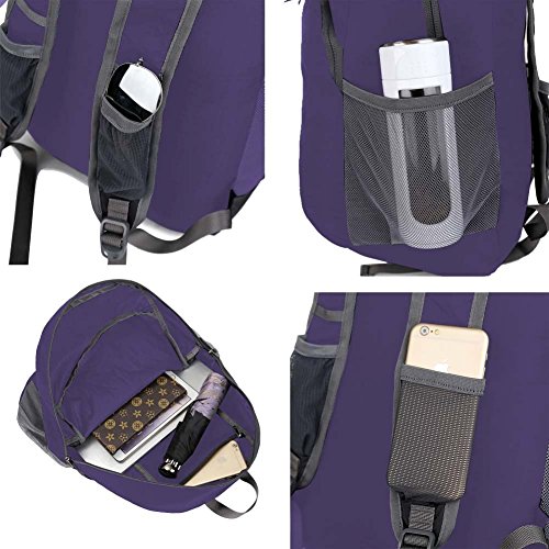 Foldable Nylon Rated 20L Lightweight Waterproof Small Camping Backpack(Purple)