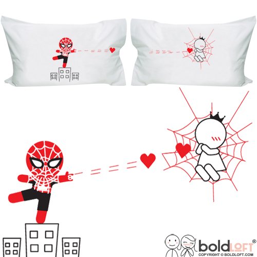 BOLDLOFT Captured By Your Love Couples Pillowcases- Funny Couples Gifts, Valentines Day Gifts for Boyfriend, Spiderman Gifts for Men, Gifts for Couples, His and Hers Gifts,, Superhero Gifts for Men