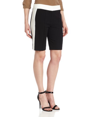 HALSTON HERITAGE Women's Colorblock Bermuda Short, Black/White, 0