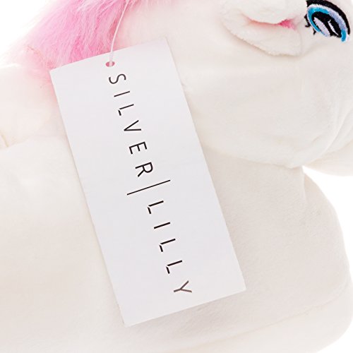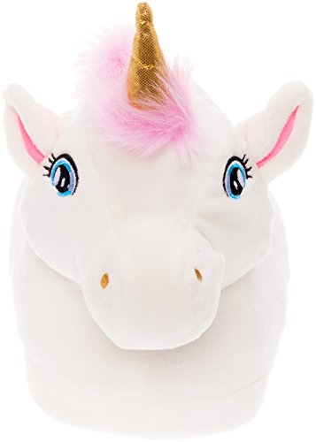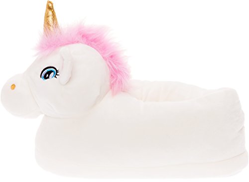 Binding : Apparel Product Description Fill your mornings with magic with these Unicorn Slippers by Silver Lilly! These adorable slippers are ultra-soft, perfect for lounging around the house. Each slipper features embroidered eyes, a glittering gold horn, and bright pink mane for a picture perfect unicorn. A comfort foam footbed provides unmatched support, and the gripped outsole gives the perfect amount of traction. Great for adults and kids alike, these fun slippers will make you smile every time you wear them! Available in sizes Small, Medium, Large, and X-Large. 0