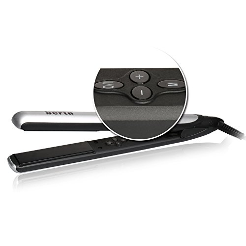 BERTA HAIR FLAT IRON 1 INCH HAIR STRAIGHTENER PROFESSIONAL IONIC CERAMIC TOURMALINE FLAT IRON LED DISPLAY 140?-220? BLACK AND WHITE