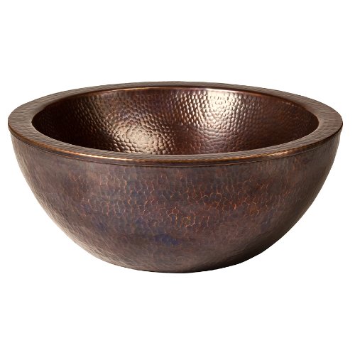The Copper Factory CF161AN Solid Hand Hammered Copper 16.5-Inch Diameter Double Wall Round Vessel Sink, Antique Copper