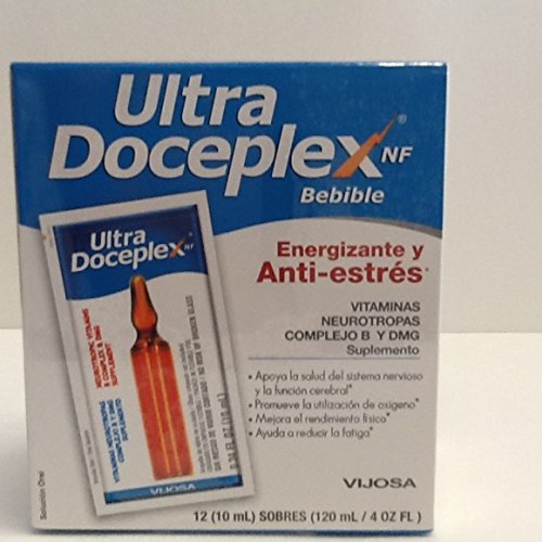 -. Binding : Health and Beauty -. Brand : Ultra Doceplex Nf Drinkable with 12 10ml -. EAN : 7702010750052 -. Feature : energizing and anti-stress neurotropic vitamins B complex and DMG supports a healthy nervous system and brain function promotes the use of oxygen improves physical performance It helps reduce fatigue / energizante y anti-estres vitaminas neurotropas complejo B y DMG apoya la salud del sistema nervioso y la funcion cerebral promueve la utilizacion de oxigeno mejora el rendimiento fisico ayuda a reducir la fatiga -. Label : vijosa -. LegalDisclaimer : Important: The results that can be attained by using our products may be variable; they are P.R.Imarily dependent on the condition of the user's organism, his (hers) eating habits, and quality of life. Our products do NOT promise miracle results and in no case do they constitute a substitution for medication. If you have any doubts or questions, please consult your specialist. -. Manufacturer : vijosa -. MPN : Vijosa -. PackageQuantity : 12 -. PartNumber : Vijosa -. ProductGroup : Health and Beauty -. ProductTypeName : HEALTH_PERSONAL_CARE -. Publisher : vijosa -. Studio : vijosa -. Title : Ultra Doceplex Nf Drinkable with 12 10ml Energizing and Anti-stress Neurotropic Vitamins B Complex and DMG